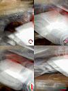 Motiv, Entfernung und Belichtungszeit sind jedes Mal gleich, Drehrichtungen rechts, links, vor-zurück, links-rechts.