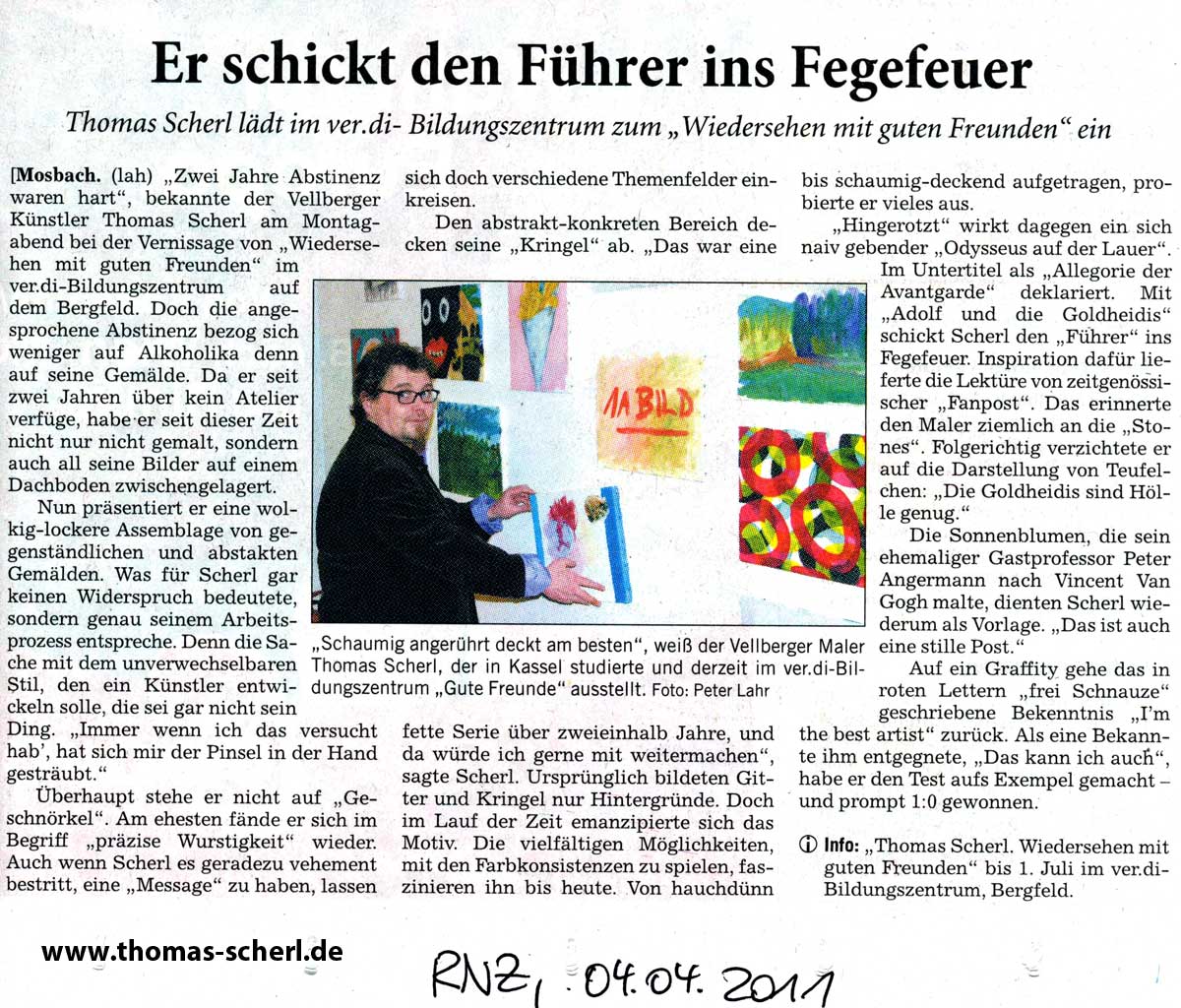 15.11.09Mein neues Video "Thomas Scherl macht den Kunstverein sauber" (DVD-PAL, 43'24) ist jetzt auf DVD im Jahrbuch "Vokabelkrieger" (Thema "Schuld und Sühne") des Berliner Hybriden-Verlags erschienen. www.hybriden-verlag.de.